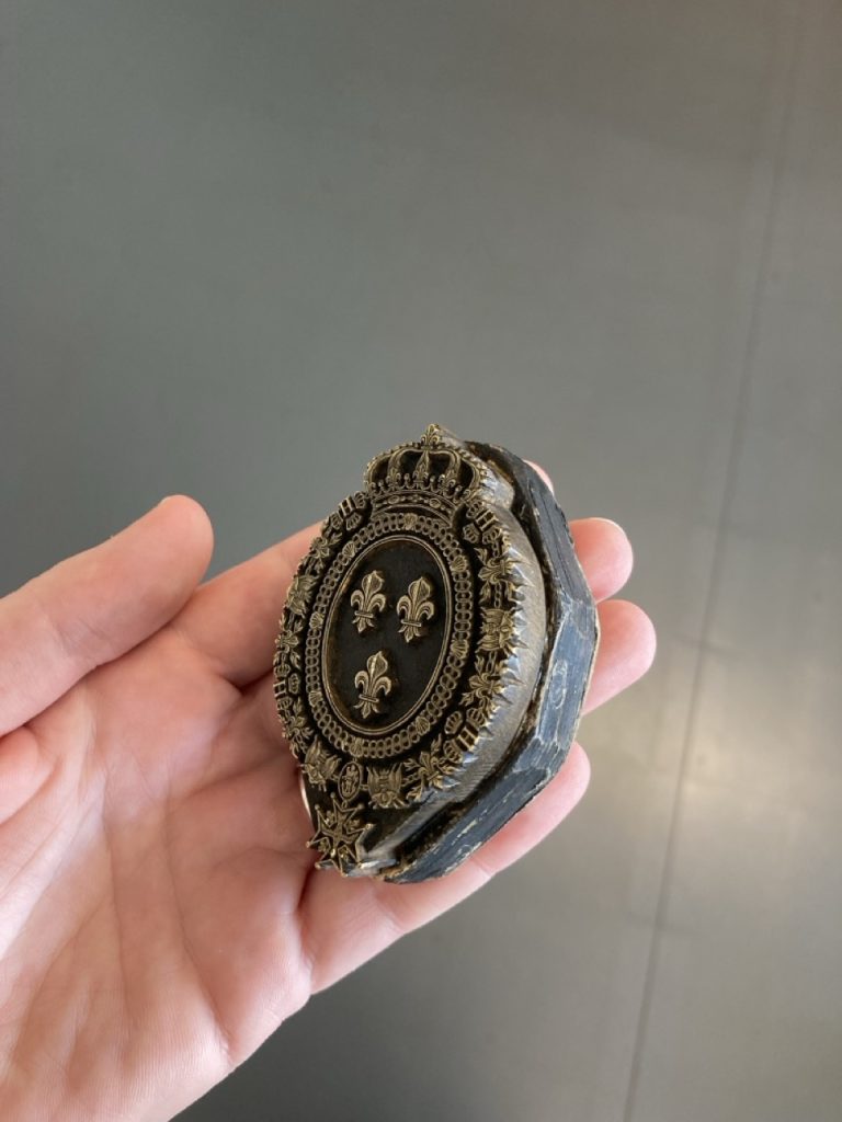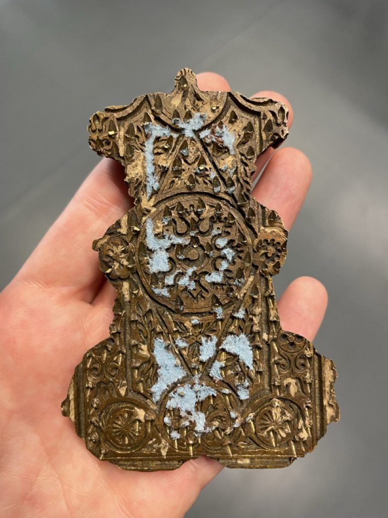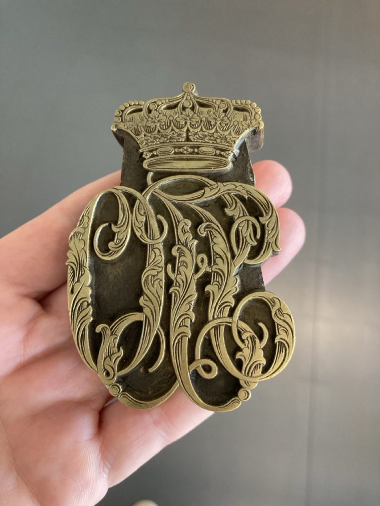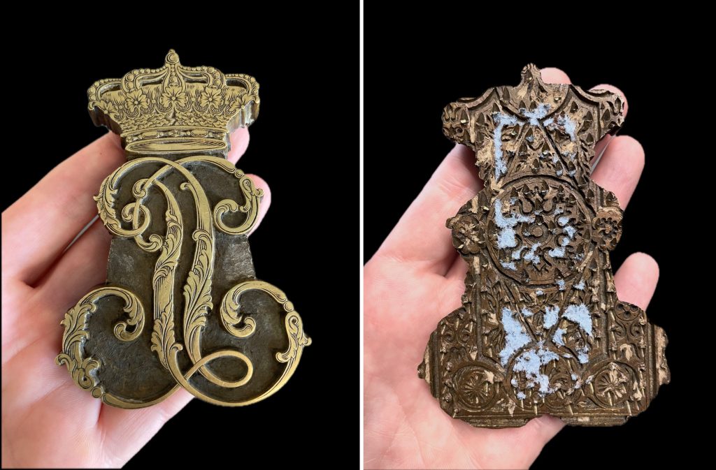 Sur une plaque en métal, des lettres surplombées d'une couronne. Elle n'est pas grande cette plaque, elle tient dans la main, alors on la retourne, et un autre motif, plus ancien, abstrait par la découpe se dévoile. La découverte de deux plaques bifaces de ce type servant aux dorures de livres a suscité la curiosité de Lucie Moruzzis, conservatrice-restauratrice aux Archives nationales et historienne du livre. Pour Entre-Temps, elle présente ces objets singuliers, et revient sur les pratiques de remploi dans le patrimoine écrit.