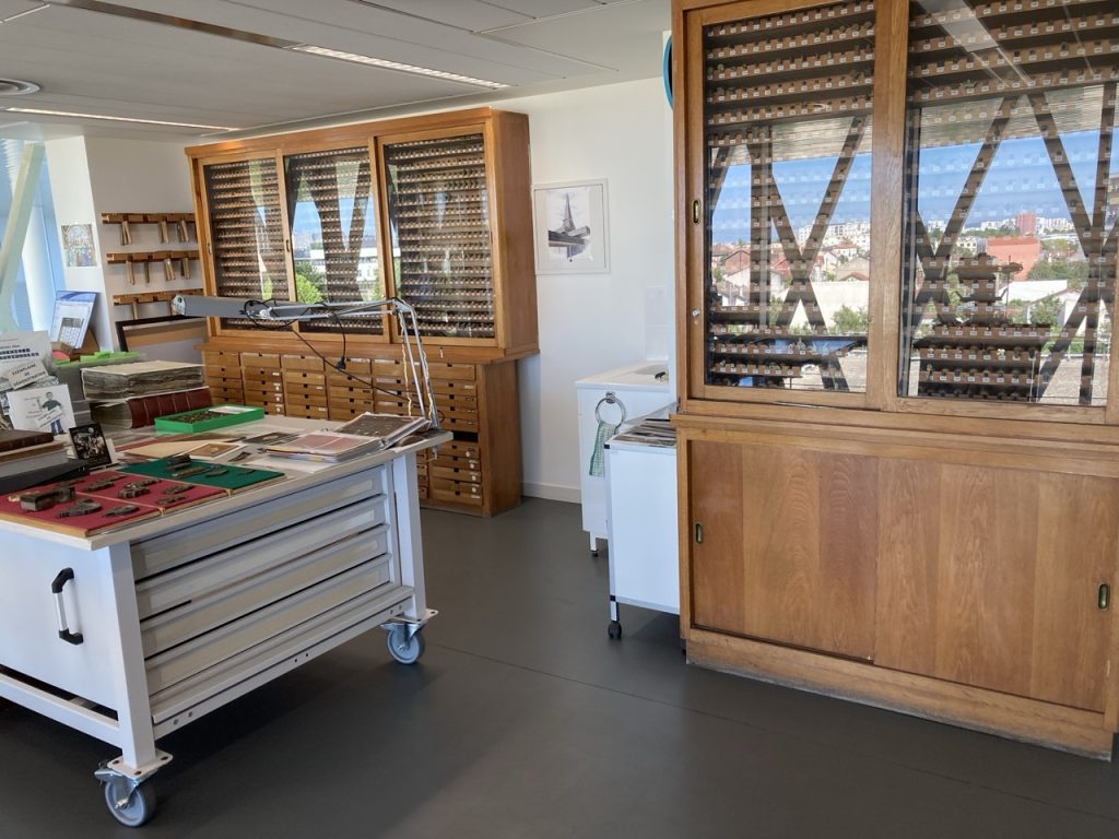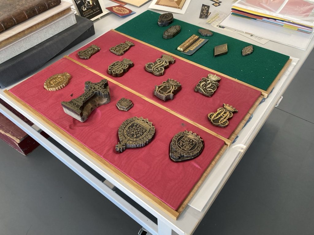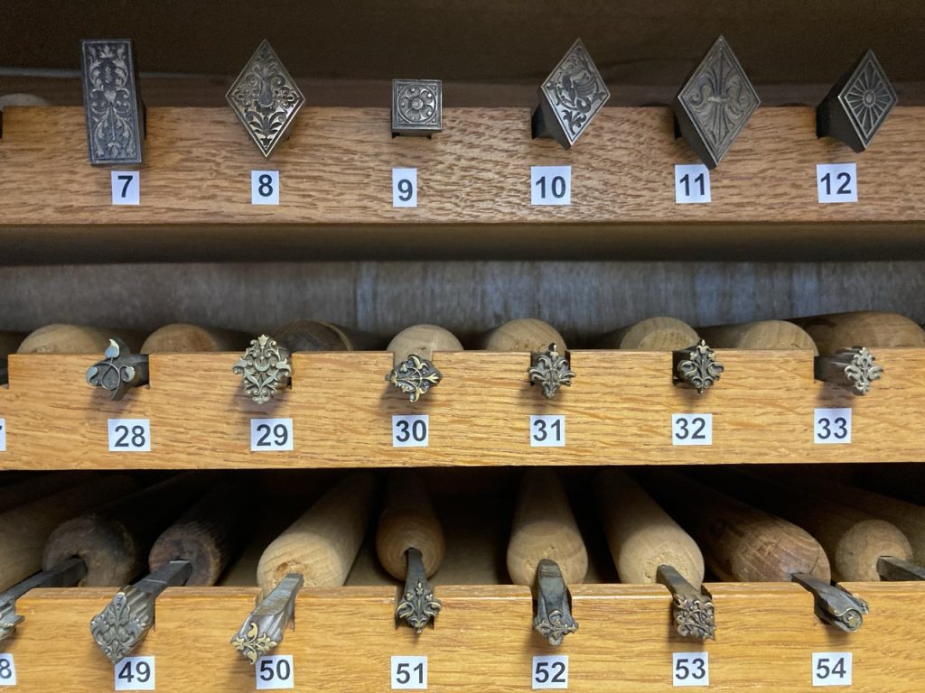 Depuis le milieu du xixe siècle, les Archives nationales abritent un atelier de dorure sur cuir. Destiné à l’origine principalement au titrage – à l’inscription de titres, donc – des nouvelles reliures effectuées sur les volumes de l’Ancien Régime au sein de l’institution, il a aujourd’hui pour vocation la reprise de certains éléments de décor après restauration ou encore la création de fac-similés. L’atelier conserve l’une des rares collections de fers à dorer conservées dans les institutions publiques, avec la Bibliothèque nationale de France, l’école Estienne ou le muséum d’histoire naturelle.