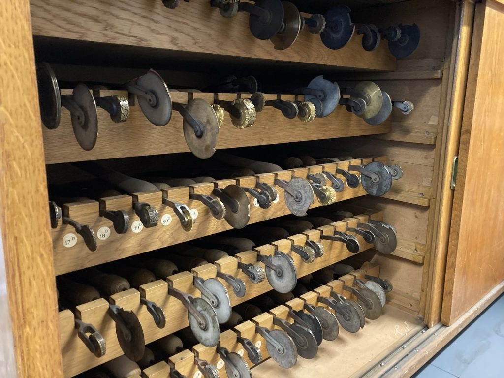 Ainsi, la totalité des outils composant les collections publiques datent du xixe siècle au plus tôt. Un inventaire des outils de dorure conservés aux Archives nationales a été entrepris par Christian Jeanjean, doreur, et Sylvie Le Goadec, bibliothécaire. Il a révélé les noms d’une trentaine graveurs des xixe et xxe siècles.