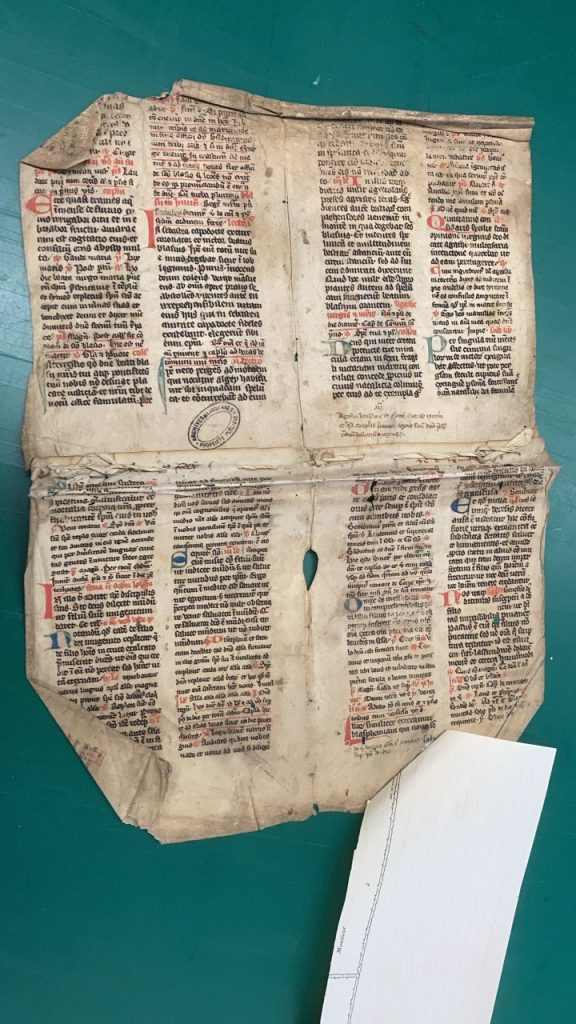 À travers un projet baptisé fragmentarium, l’université de Fribourg entend – forte de la participation d’un nombre conséquent de partenaires dans le monde entier – centraliser à travers des notices précises les informations relevées sur les fragments conservés dans les archives et les bibliothèques. Cette entreprise de longue haleine a déjà permis des rapprochements importants et passionnants pour l’histoire des institutions et des écrits.