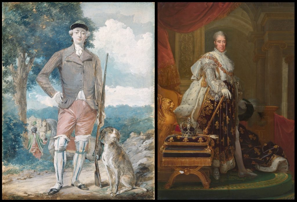Là encore, cette exposition offrait de multiples occasions de complexifier le récit sur Charles X, puisque chacun des aspects abordés était étroitement lié aux activités coloniales de la France. La campagne menée par le comte pour s’emparer de Gibraltar face aux Britanniques, par exemple, visait en partie à faciliter le commerce avec les Amériques, tandis que de nombreux objets de son cabinet de curiosités provenaient des territoires colonisés et avaient été importés en France à bord de navires négriers. Son plus proche ami et conseiller en matière d’art, le comte de Vaudreuil, était né dans la colonie de Saint-Domingue, où son père était gouverneur. Vaudreuil avait constitué une extraordinaire collection d’œuvres d’art grâce aux profits tirés des plantations sucrières de sa famille ; et lui et Artois appartenaient au réseau colonial de l’Ancien Régime qui spéculait sur les plantations de Saint-Domingue, l’immobilier parisien, le marché de l’art et la traite négrière. Des années plus tard, Artois se souvenait avec affection de Vaudreuil et de sa famille, et les héritiers de son ami perçurent une somme d’argent considérable au titre des indemnités de 1825. La vie du comte d’Artois ne se laisse pas clairement découper en une « jeunesse » d’avant la Révolution et un règne sous la Restauration ; ces deux moments et leurs liens avec le colonialisme et l’asservissement humain sont inextricablement liés.