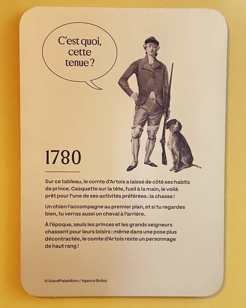 Lors d’un week-end hivernal plus récent, en décembre 2025, nous sommes allées voir l’exposition sur le comte d’Artois au château de Maisons, peu de temps avant d’assister à une conférence de la FME à la Bibliothèque nationale de France. L’exposition de Maisons, organisée conjointement par le château de Versailles et le CMN, se concentre, comme son titre complet l’indique, sur la « jeunesse » de Charles X en tant que comte d’Artois : sa carrière militaire ratée, son prodigieux mécénat artistique et architectural et sa collection d’objets scientifiques et ethnographiques provenant d’Asie, d’Afrique et des Amériques.